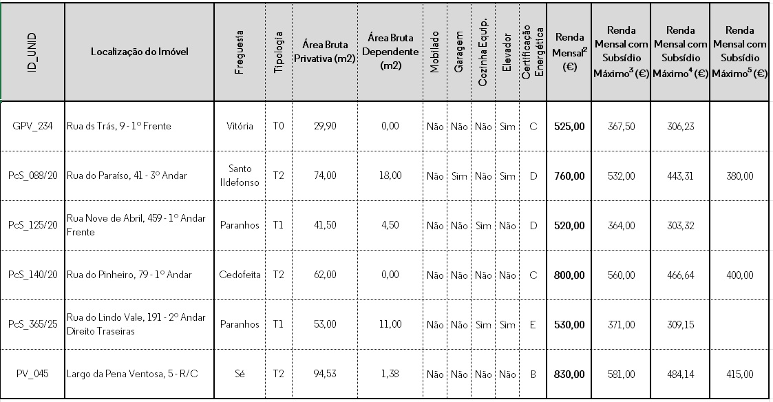 A Porto Vivo, SRU - Sociedade de Reabilitação Urbana do Porto, E.M., S.A., com sede na Avenida Fernão de Magalhães, 1862 – 9º andar, 4350-158 Porto, torna pública a abertura de um procedimento para colocação no mercado de arrendamento e de subarrendamento a rendas acessíveis de 6 (seis) habitações, sendo 4 (quatro) do âmbito do Programa Municipal “Porto com Sentido”, 1 (uma) da propriedade da Porto Vivo, SRU, e 1 (uma) de propriedade municipal sob gestão da referida empresa municipal.