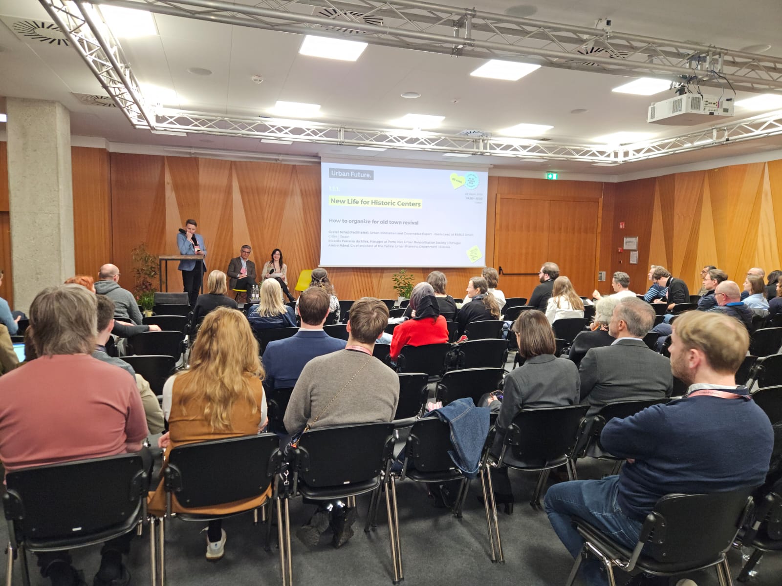 Na sessão “New Life for Historic Centers”, dedicada à revitalização de zonas urbanas consolidadas, foram debatidas abordagens para devolver função e vitalidade a centros históricos, conciliando preservação patrimonial com novos usos e dinâmicas urbanas.